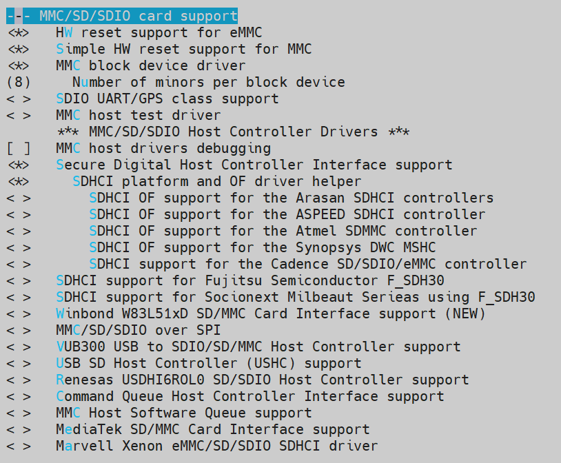 b.进入 Device Drivers → MMC/SD/SDIO card support,配置 SDIO