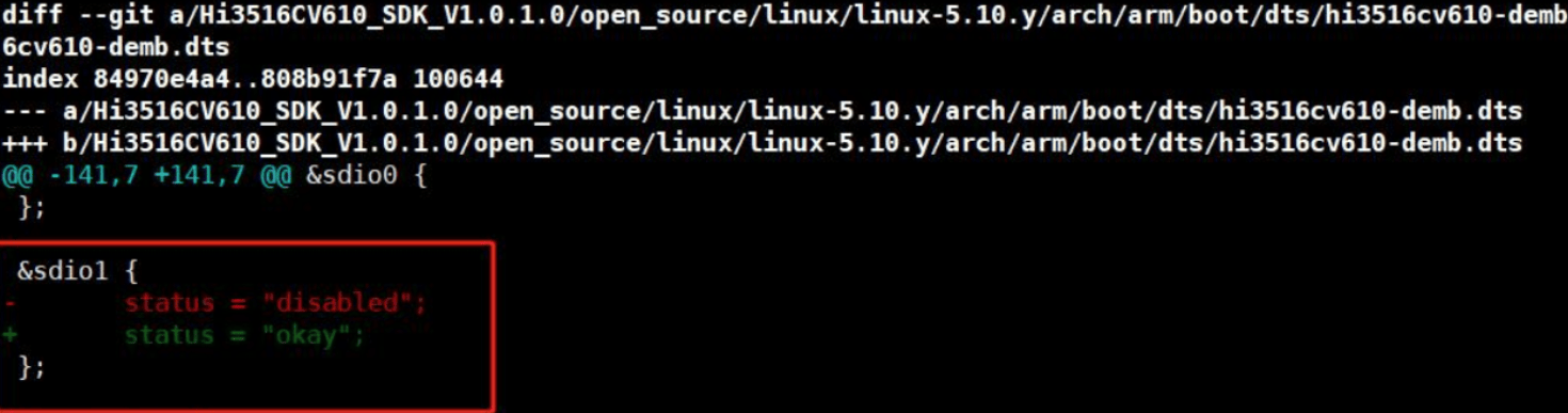 修改对应板子的设备树并启用sdio,对于我的板子硬件用的sdio1,所以打开sdio1。
