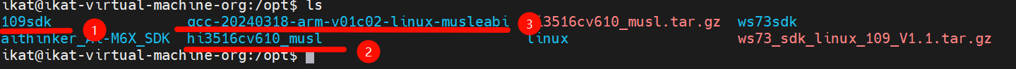 /opt/,在目录/opt/hi3516cv610_musl下。 - 将工具链解压到你想存放的目录,同样解压到了/opt/,在目录