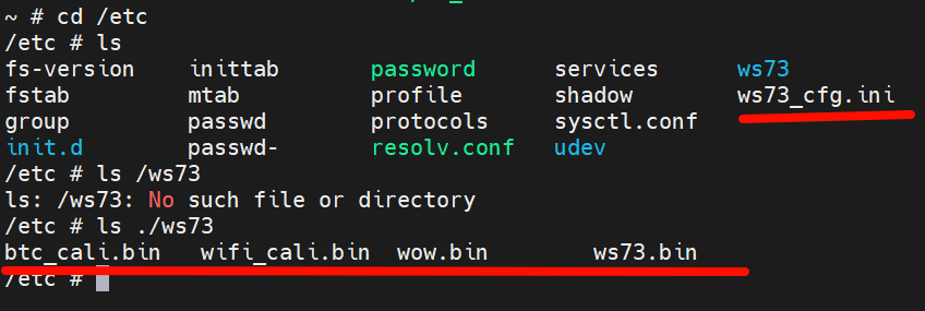 - 将Linux服务器上的/opt/109sdk/output/ws73_cfg.ini 文件传输到目标板子上的/etc/目录下。