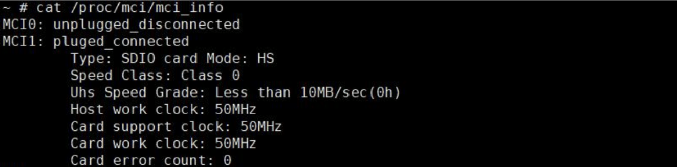 能看到sdio1有设备并有一些参数信息。说明sdio硬件连接没问题。