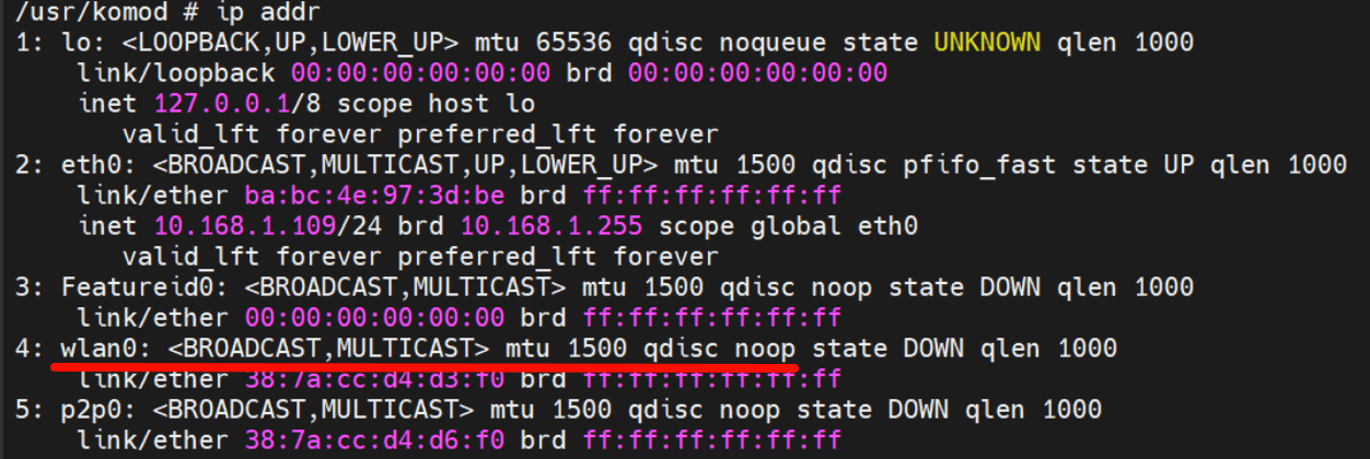 #查看网卡信息,检测是否多出来一个wlan0,若是的话网卡驱动安装成功