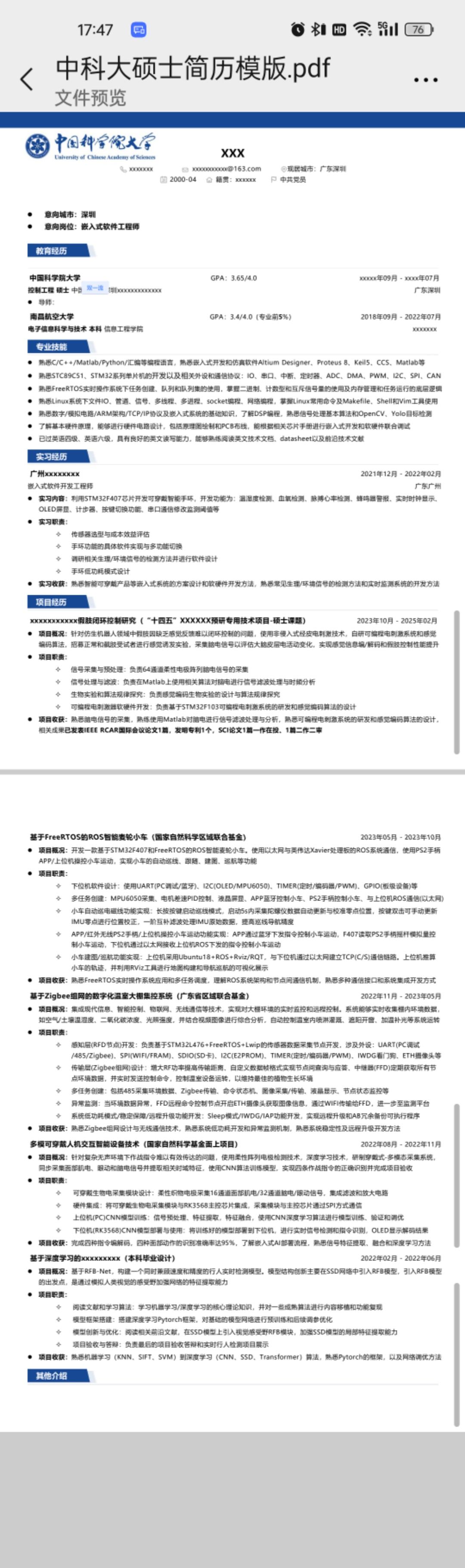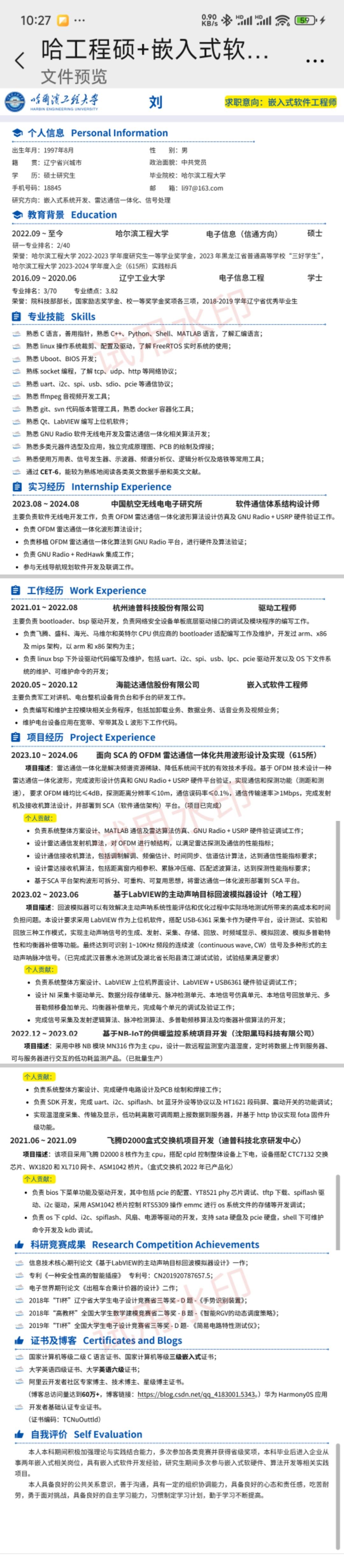 嵌入式优秀简历合集